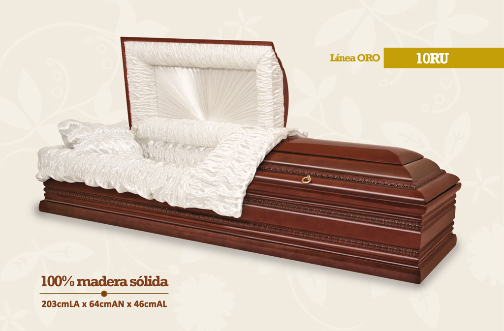 Cofre de dos tapas Importado 100% de Pino curado con Mortaja satinada. Mortaja se deja colocar en la parte superior externamente del cofre. Inclye un domo acrylico y contiene plastico para mayor proteccion del cajon. Posee lindo labrado en las partes laterales y tapas. Cajon de exelente construccion y acabado en Polyretano brillante. El ancho es de 64 centimentros.